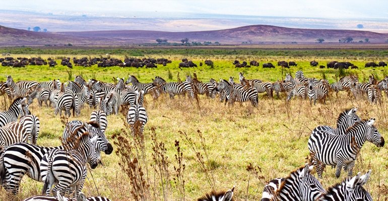 But since the wildlife have not learned to fear mankind, your Tanzanian wondrous safari starts at home. They can also be observed from most of the camp tents and lodge rooms. Warthogs and giraffes are frequent visitors as are elephant and buffalo. Hyraxes, like cuddly stuffed toys, inquisitive mongooses and bounding dik-diks congregate on terraces. Hippos and crocodiles bask on river banks. Zebra and giraffe stroll only yards from the camps. Troops of baboons and monkeys groom each other and frolic while lion prides snooze in dry grass within binocular or camera zoom range.