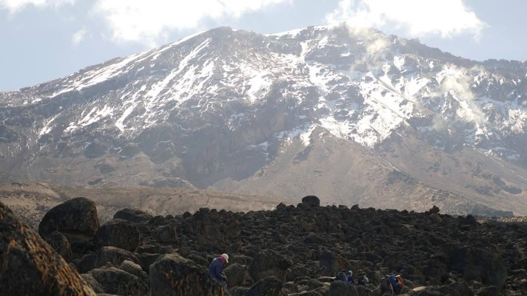 A steep ascent up the eastern side of the valley leads just below the Heim Glacier, with breathtaking views along the way. The trail then climbs the imposing Barranco Wall before descending into the Karanga Valley. After crossing the valley, the route ends with a final climb to Karanga Camp, which lies in the alpine desert zone.